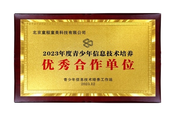 童程童美獲評“2023年度青少年信息技術(shù)培養(yǎng)優(yōu)秀合作單位”