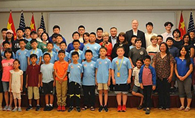 2019年WRO南加州世界機器人奧林匹克競賽賽前,童程童美學員受邀參加由中國駐洛杉磯總領館為中美兩國青少年機器人愛好者舉辦的“開放日”活動,并獲得了總領事館網(wǎng)站的隆重報道。