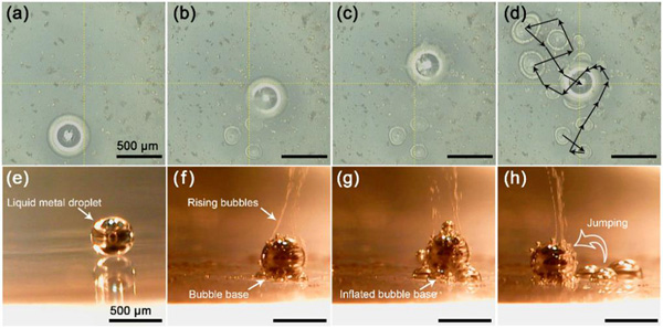 液態金屬液滴被鎳粉顆粒觸發后在NaOH溶液中產生的跳躍行為